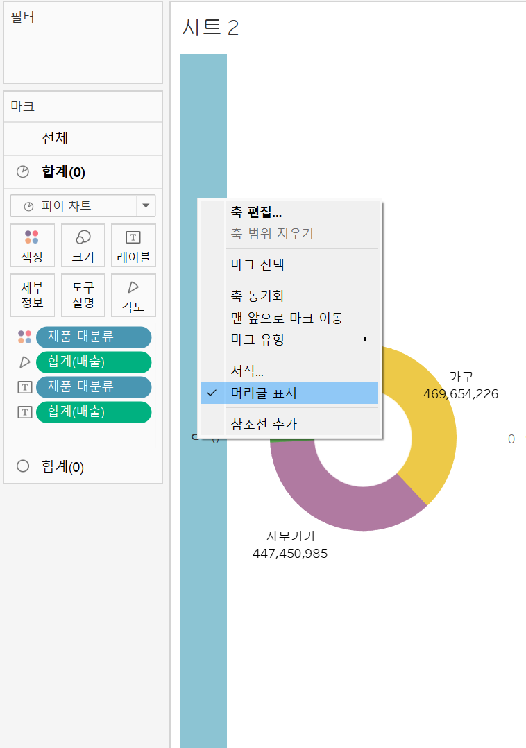 [태블로 기초] 3. '도넛 차트' 그리
